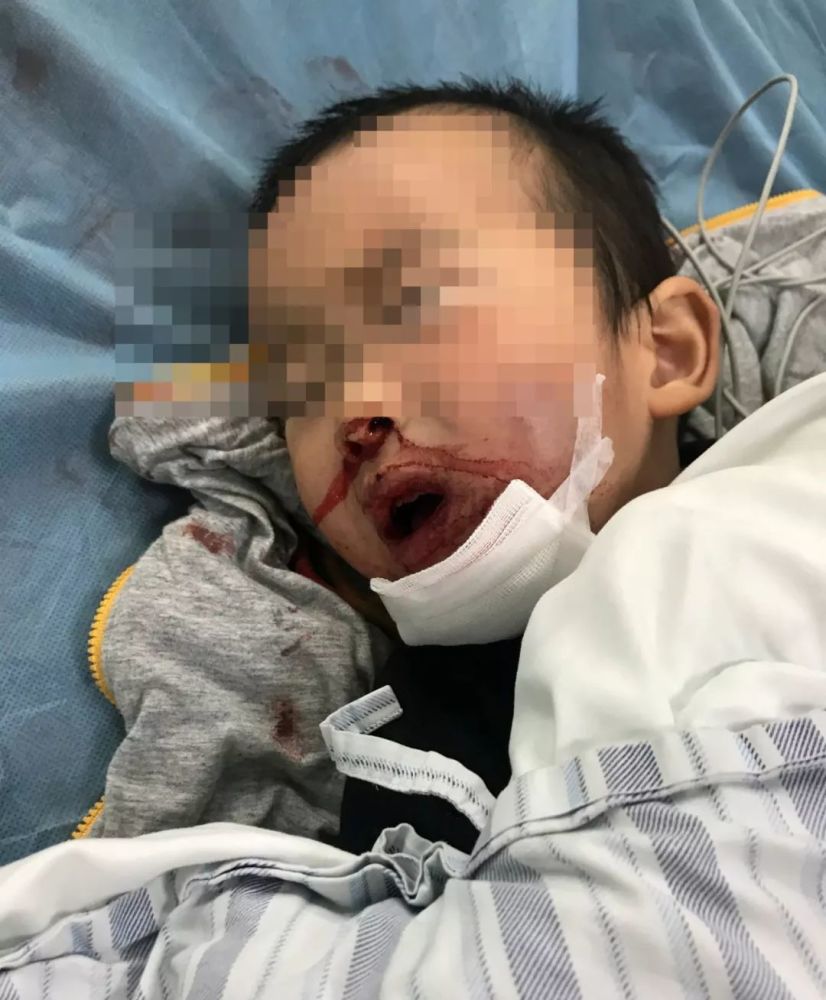 孩子嘴巴、鼻子都在流血,脸上有道很深的伤口。吴女士心里发慌,抱着孩子在路中央,报警等待救援。