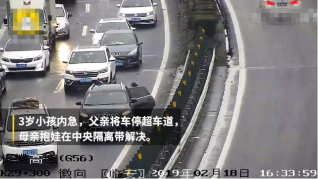 2月18日,聂某带着妻儿从湖北老家赶回杭州。下午4点半左右,车正行驶在杭徽高速上,3岁的儿子突然尿急,聂某见车速不快,便将车停在超车道上,让妻子给儿子把尿。