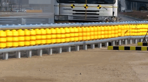 抗冲击旋转式防护栏是高速护栏上的一场“革命”。目前,该产品已获得22项发明专利,在韩国、日本、美国等国家被广泛使用,使用地段的交通事故死亡率降低90%以上。在交通部公路试验场通过小型车和大货车的碰撞试验并获得了成功,试验结果达到了SB、SBm级护栏防撞等级技术标准。