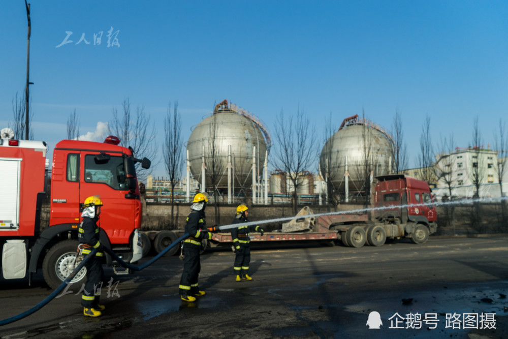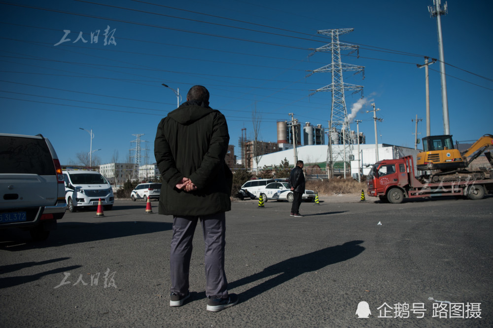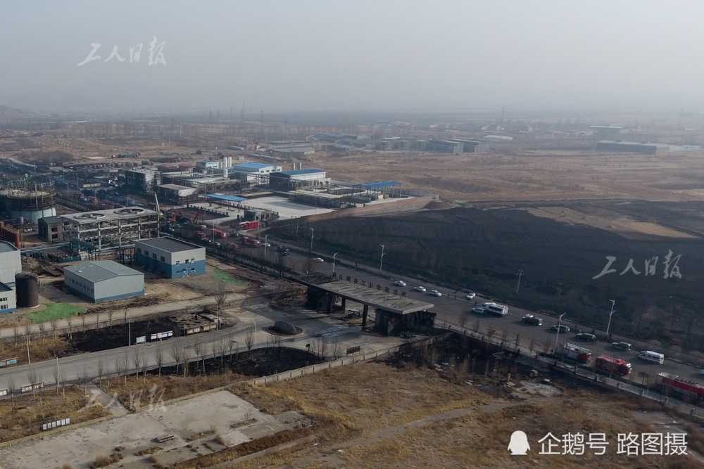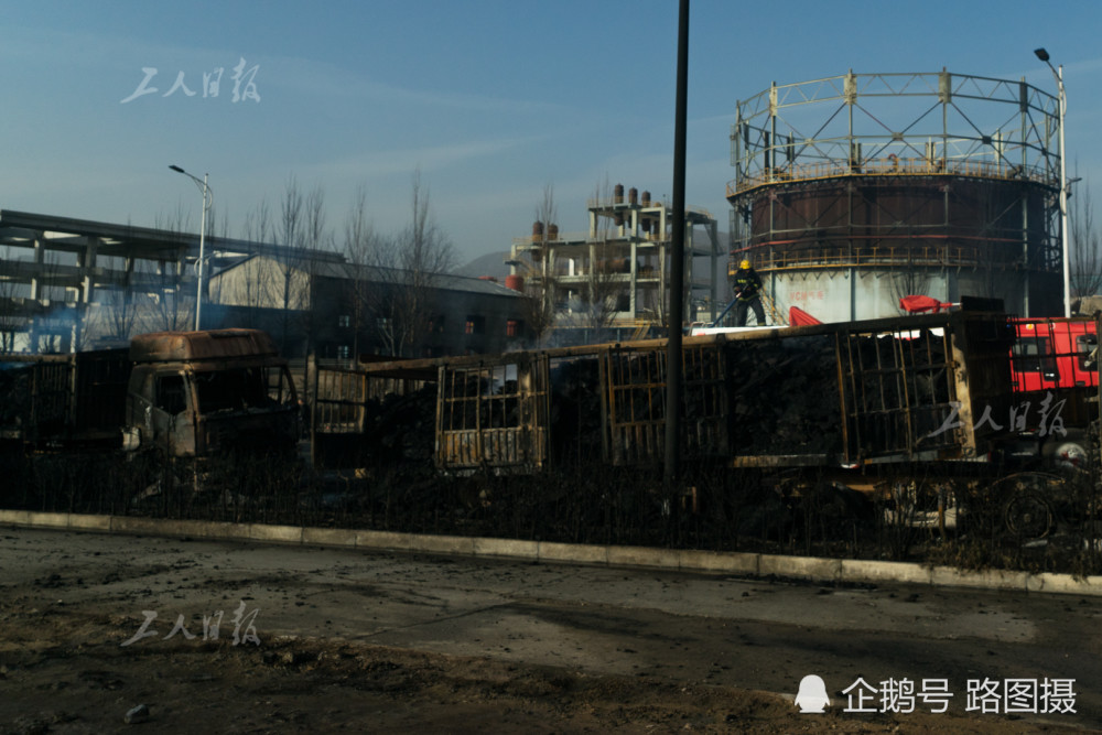 工人日报摄影部11月29日张家口摄影报道。图为11月28日,盛华公司大门前的马路,黑色区域为过火后留下的痕迹。