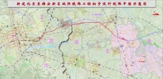 新建北京至雄安新区城际铁路工程初步设计线路平面示意图。