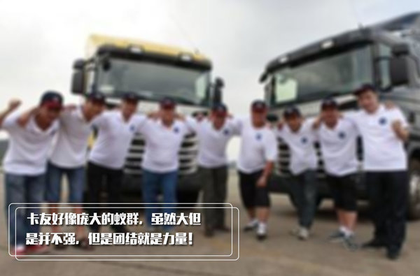 卡友好像庞大的蚁群,虽然大但是并不强,但是团结就是力量。卡友不是弱者面对偷货的、盗油的、劫道的、黑心扣钱的,该刚的时候还是要刚的,该团结的时候还是要团结的,这不是惹是生非也不是忍辱负重,而是要借助合法的手段保护自己。不惹事更不怕事。