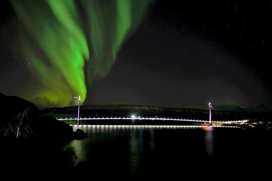 大桥位于北极圈内,面临极寒、大风、极昼或极夜等极端气候影响。