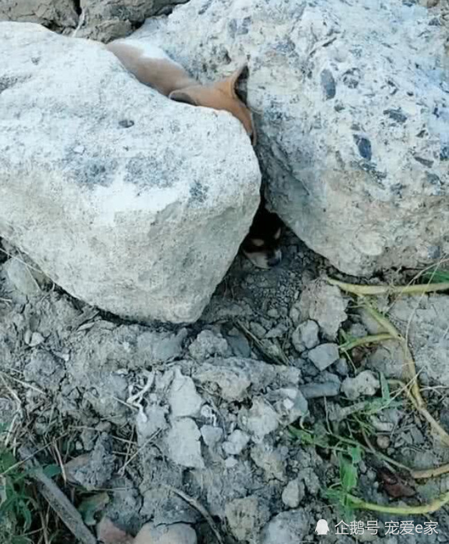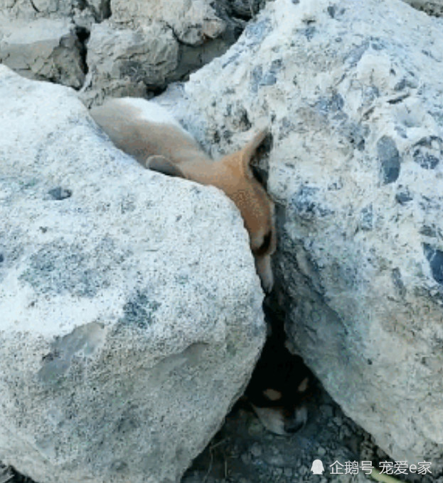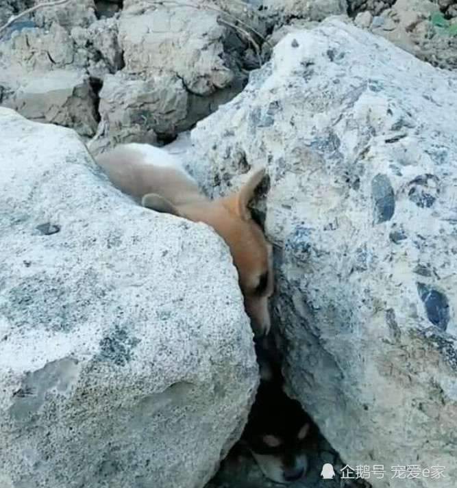 这只流浪狗十分的肯定看到朋友过来了然后往石头缝里钻,好像朋友会伤害他一样。朋友看到这只流浪狗非常的可怜,然后肯定是被人们给打怕了一看到人就跑,所以朋友就慢慢的接近他。然后再把她抱在自己的身上,最后想要把它带回家,自己好好的养着。
