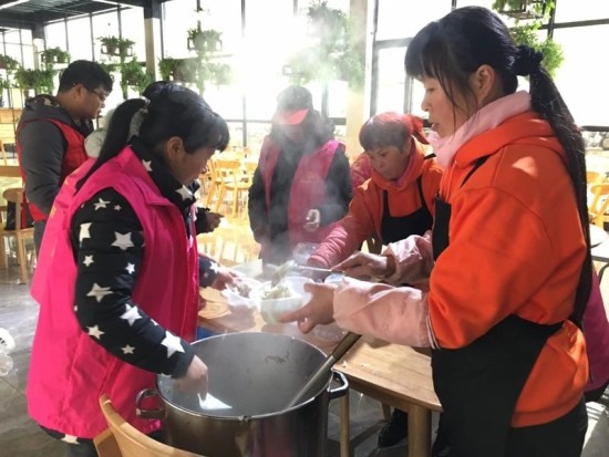 冬雪的夜,显得格外寒冷、漫长。沿路仅有几个小村,没什么店铺,司机们偶尔下车方便,却也不敢走远。到了今早,人十分困倦不说,更是饥肠辘辘了。这一切,花谷· 田园综合体负责人、花开花宿老板娘方敏看在眼里、急在心头。她经营的民宿,位于程丰村,就在省道旁。看着冰天雪地里一辆辆没法动的大货车,她突然萌生了为司机们免费送餐的想法。