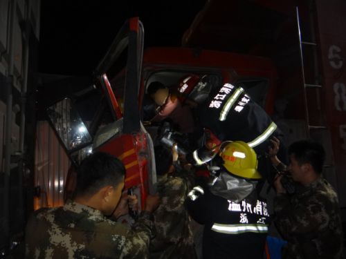 日前,苍南县龙港镇发生一起三货车追尾事故,一名驾驶员被卡在车内无法动弹,危急时刻,交警消防联手救援,安全救出驾驶员,及时恢复交通。
