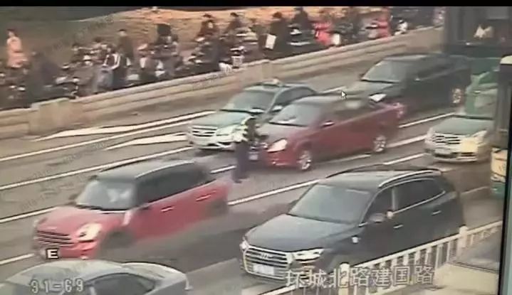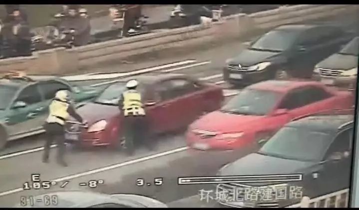 监控视频清晰地记录:在民警的一再后退避让的情况下,该车迅速加速,向体育场路方向逃逸。