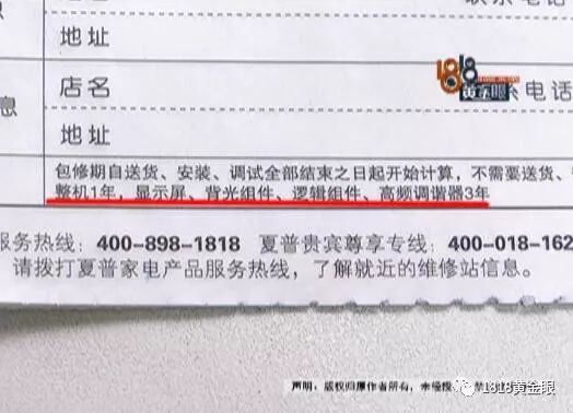 夏普售后表示,保修是整机一年,显示屏、背光组件、逻辑组件、高频调谐器三年。