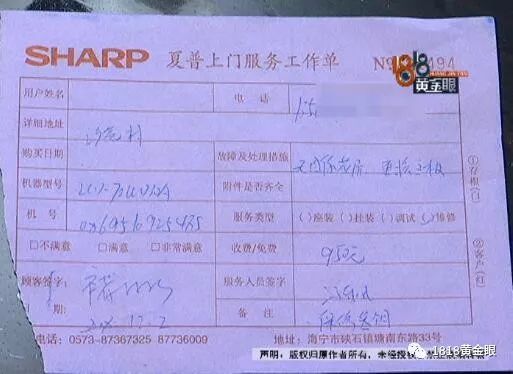 夏普海宁售后服务中心在三十多公里外的硖石镇,记者赶到这里核实情况,对方表示,目前褚大伯还没有支付950元维修费。