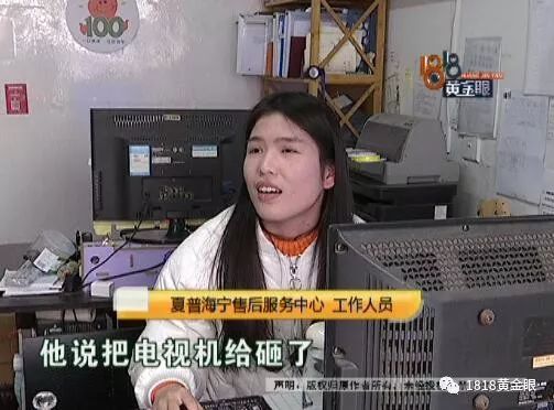 夏普海宁售后服务中心 工作人员:“第一次我们上门,他说把电视机给砸了。(没砸嘛)他肯定不会砸的呀。(那他当时为什么要说把电视机砸了?)他说要换机,因为购机超过三年,本来也已经超过保修期了他说要换机。”