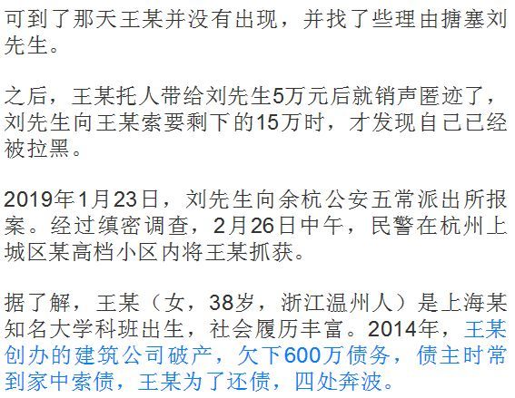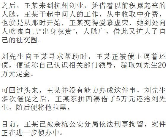 近日,家住余杭五常的刘先生碰到一女子王某,自称父亲是“厅长”,爷爷是“司令员”……