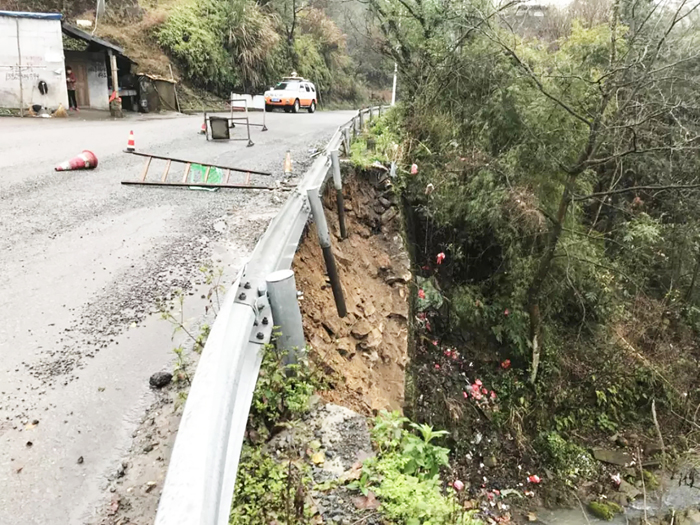 昨晚20时30分,矾山路政中队接到群众报告——甘岗线1K+750M(温州窟路段)涵洞上方公路发生坍塌。中队接报后与南宋公路管理站第一时间组织人员赶到现场设置安全警示牌及反光锥,防止过往车辆、行人通过时发生危险。