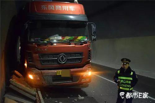 根据路政员现场勘验,肇事车辆为一辆红色四轴货车,被死死的卡在了隧道排水沟内,造成排水沟盖板和路缘石以及隧道防火涂层、沟内电线电缆严重损坏,路产赔付金额高达八万多元,好在未造成人员伤亡。