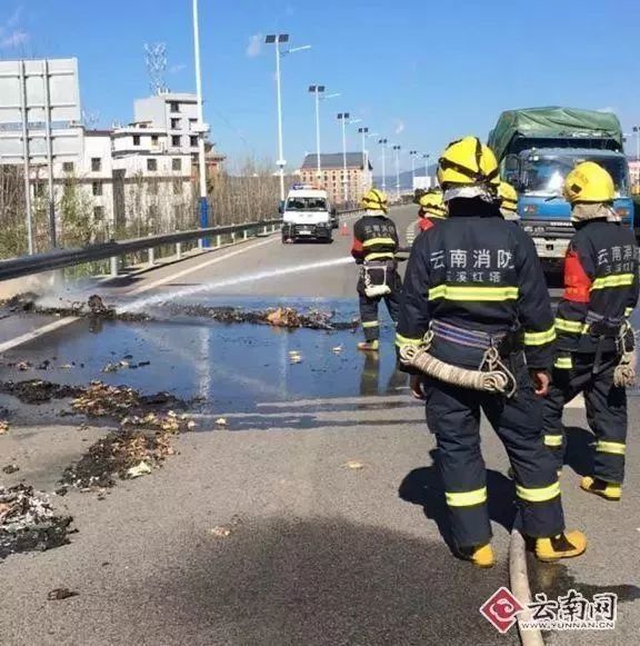 2017年1月7日13时30分左右,一辆号牌为云AZ395L的小型货车拉载满车小鸡幼崽由昆明往玉溪元江方向行驶至昆磨高速玉溪段K92+200米处时,因路上“飞来”的烟头掉在车辆驾驶室上方货箱内点燃了货箱内的棉被,引发车辆起火,驾驶员周某抢救货物过程中受伤,车上拉载的10000多只小鸡幼崽幸存下来的所剩无几,车辆及货物损失约30000元。