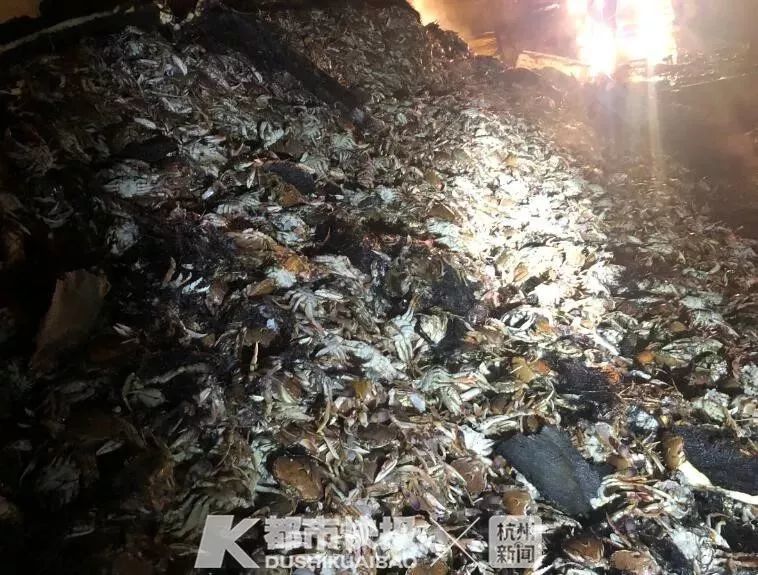据了解小货车司机姓杨,是个95后,外地人,他是从台州出发将一车的螃蟹运往舟山的。行驶至事发路段时,他突然发现右后轮着火了,等他下车的时候火势一下子大了起来已经无法控制,等消防官兵赶到现场的时候车子已经烧成了铁架子,一车螃蟹也全部阵亡了。