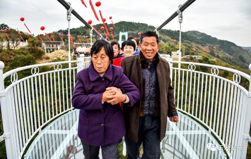 “听到玻璃吊桥启用的消息,非常兴奋,特意从甸山头村赶来一睹为快。”