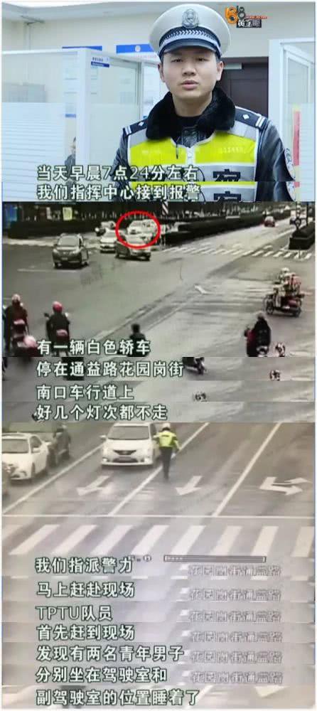 醒来后男子当时档位是挂在前进挡上,脚踩在刹车上,他人一醒,油门松了后,车子往前溜了一下,一直顶到了前面的警车才停下来。