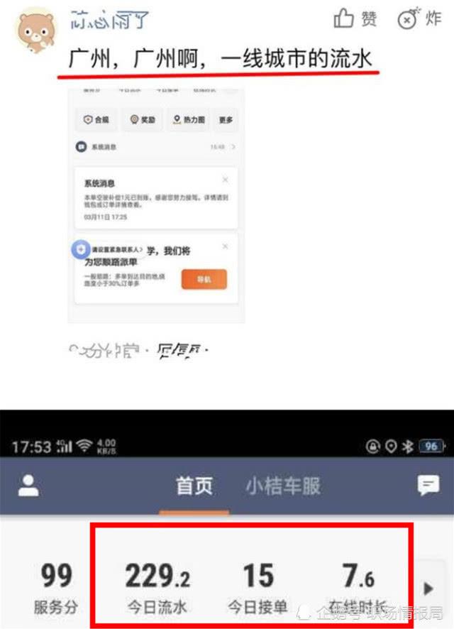这位在广州跑滴滴的男子给我们晒出了他的后台信息,我们可以清晰的看到他的各项数据,只见他在线的时间是不到8个小时,自己一共才接了15个单子,最后拿到手的钱只有230元左右,这下算下来,每个订单才只有15元,大城市的路程基本上比较远,这个价位真的是有点低了。怪不得这位车主会忍不住呐喊,这就是广州一线城市的流水。看完这些我们也感到凉凉,难道市场行情都这么差劲吗?还是滴滴怎么了?