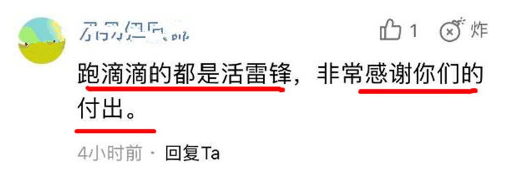 网友一:现在居然还有人继续跑滴滴,真是勇气可嘉,这些人都是活雷锋啊!都是舍已为人啊,我们都要感谢你的辛苦付出!