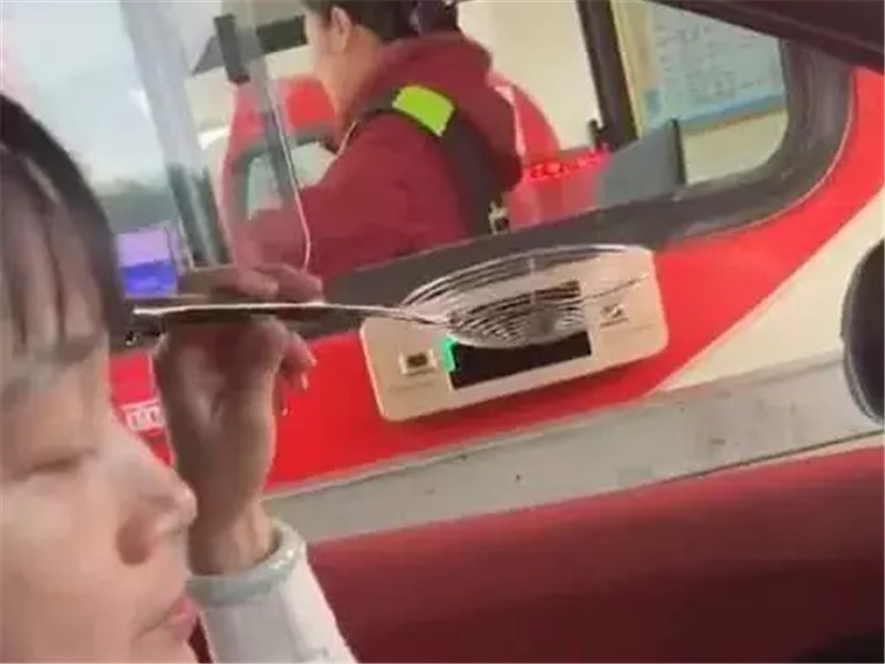 而在最近就这样一组照片在网络上爆红了,这组照片也是出现在高速公路上的高速取卡,但是为什么这样一组照片就爆红了?我们可以仔细观察一下,原来这名女司机手上拿的是一个漏勺啊。这名女司机通过一个漏勺方便的把钱给了收费员,而收费员也方便的把卡给了自己,这样的做法也引起了很多网友的好评。