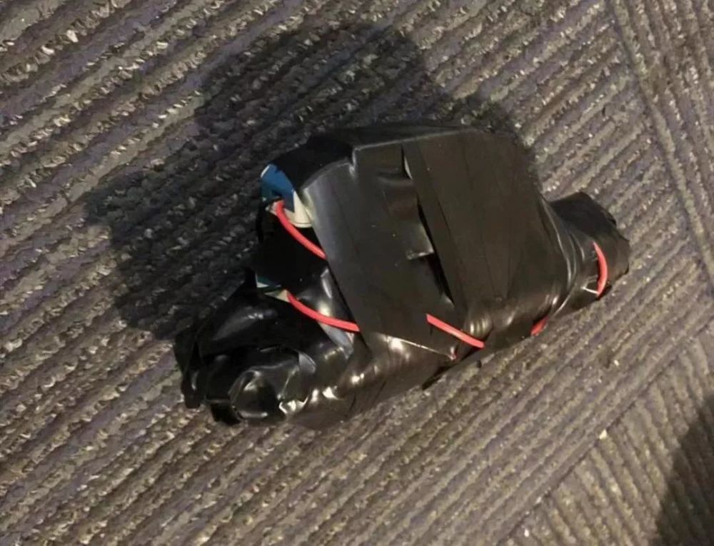 经过现场勘查,民警发现这个所谓黑色的物体其实是个由变压器、电线、胶布等伪装的假炸弹。