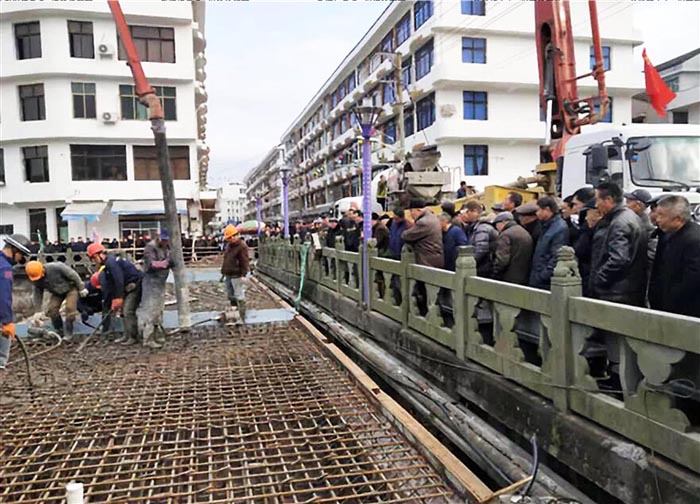 12月27日消息:日前,矾山镇新华街桥头人山人海,大家都在围观正在进行中的人行桥改扩建工程。据了解,该工程由矾山乡贤张松出资150万元建设。人行桥新加宽部分正在通过混凝土输送泵及输送管道浇灌在板面之中。若进展顺利,整个工程有望在新春来临之际完工,供居民休闲观光。