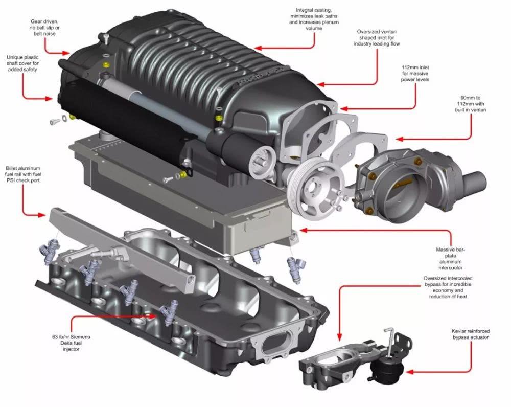 地球人都知道,涡轮的好处是大马力,坏处是动力响应慢,而自吸机正好相反。机械增压器,则是一种能保证自吸机的动力输出响应的同时,还能做到更大功率而且没有迟滞的增压器,而且相比涡轮增压,机械增压的成本和耐久性甚至还要更好一些。
