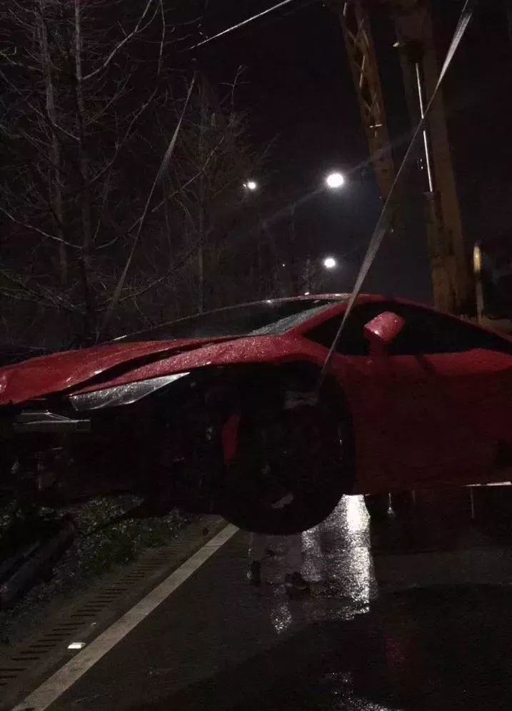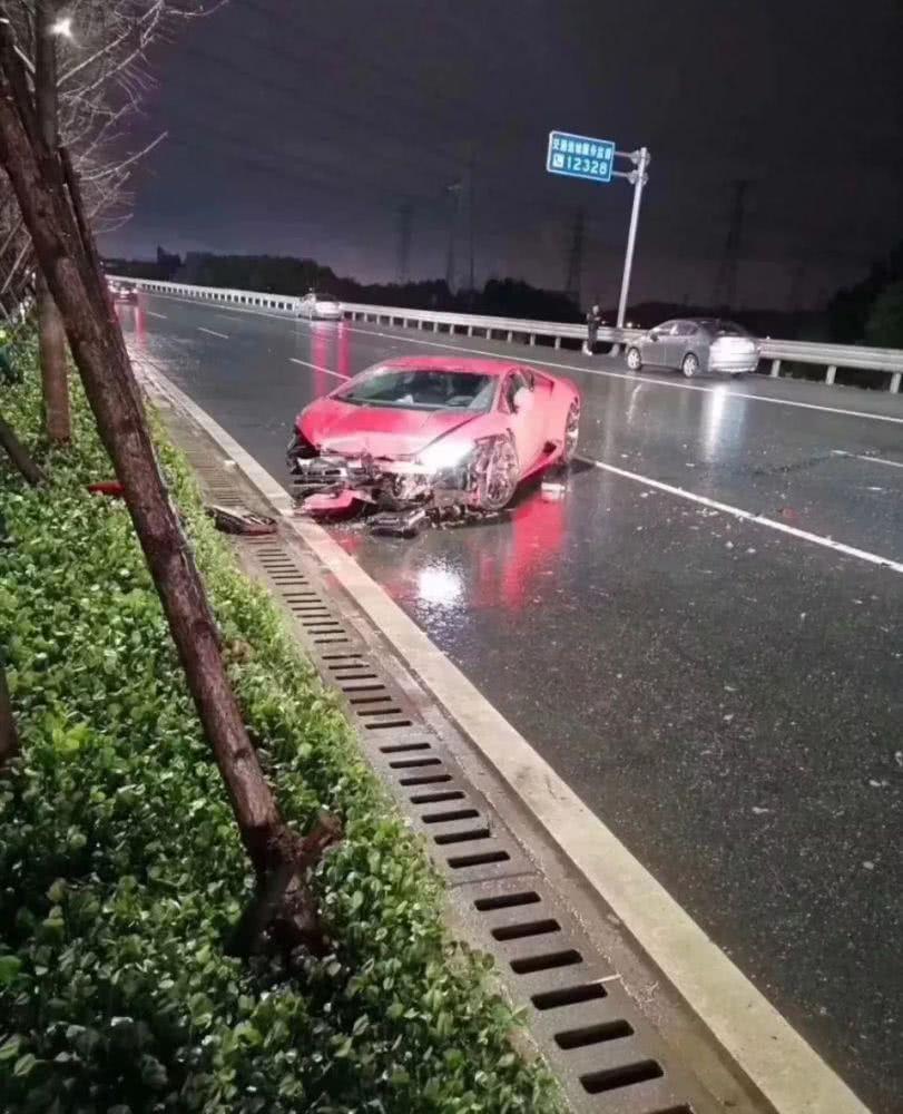 3月28日晚上8点10分左右,G527东阳至义乌公路交界处发生一起价值不菲的交通事故,一辆红色兰博基尼失控连续撞击路旁四五棵树后,冲向绿化带。