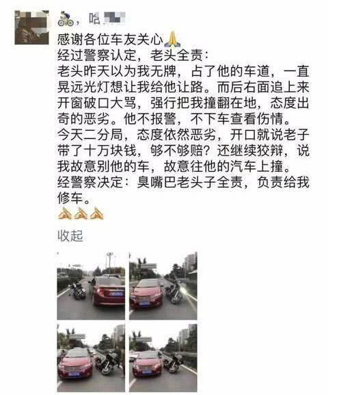 摩托车主,尤其是这款摩托的车主可不是好惹的。他立刻回嘴教训了本田两句。结果本田车主怒了,直接来别车,最后还把摩托给撞倒了。本田没看到摩托的临时牌照,以为他是无牌上路,而且觉得摩托就是应该给轿车让路,于是态度一直很是蛮横,直接“豪气”的说,我带十万块钱够不够赔!