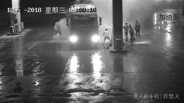 12月27日讯 (通讯员陈燕锋 付淑芳)12月26日凌晨5时许,武汉室外温度低至3度,伴随中雨,天色还是灰蒙蒙的。此时,一辆车身长达10余米的大货车驶入中国石化武汉石油分公司平安北加油站,让人意外的是车胎冒烟且已有明火。加油站值班员工罗伟见状,连忙大喊着:“师傅,你的车起火了,快停下。”